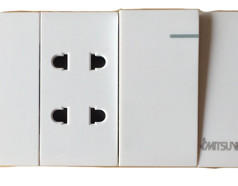 Bộ công tắc đơn + ổ cắm đôi 2 chấu